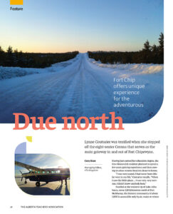 The “Take it Outside (The Norm)” issue won silver in the Service Journalism category, in the Illustration category for Robert Carter’s work “Tom Spila: The Band Plays On,” and was a finalist for the Editorial Package (Print) and Feature Design awards. The issue includes Hare’s piece “Idyllic Isolation: Remote School Offers Adventure and Opportunity,” a finalist for Alberta Story, about Brittney Lyon’s experience as principal, and teacher of the 5–9 cohort, at Chipewyan Lake school in Northern Alberta. Lyon describes how this unique teaching assignment “calls for a sense of adventure and relentless flexibility.”